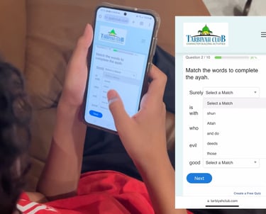 Members will demonstrate their learning by competing in a leaning games called Placing Words. Winners will points which will get them rewards from parents and from Tarbiya Club.